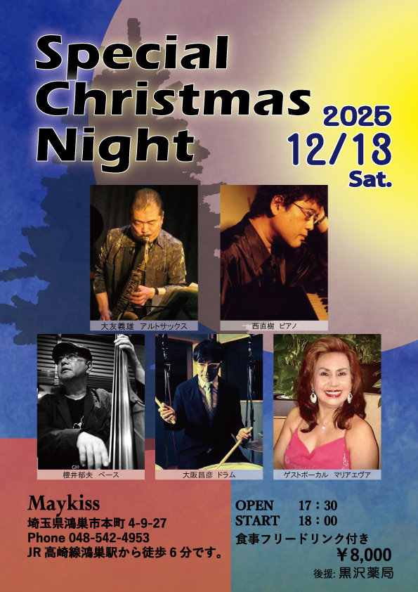 出演:大友義雄(as)、西直樹(p)、櫻井郁夫(b)、大阪昌彦(d)、スペシャルゲスト:マリアエヴァ(vo)